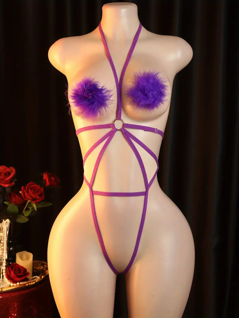 Sexy bodysuit set, tempting hollow cut-out strap sexy clothing, women's lingerie, bodysuit with waist cincher, sexy slim fit bodysuit.