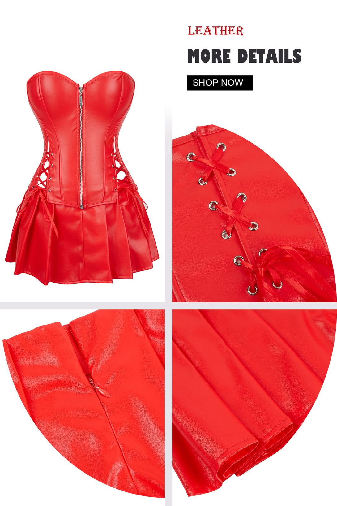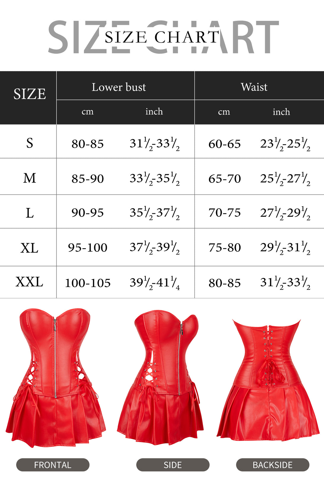 - FEATURE: The Women's Punk Rock Faux Leather Corset with Skirt features 8 plastic bones on both sides, and adjustable straps designed to lift and support the chest. It can ensure a better fit for waist. The Tutu skirt has a zipper on one side for easy on and off.