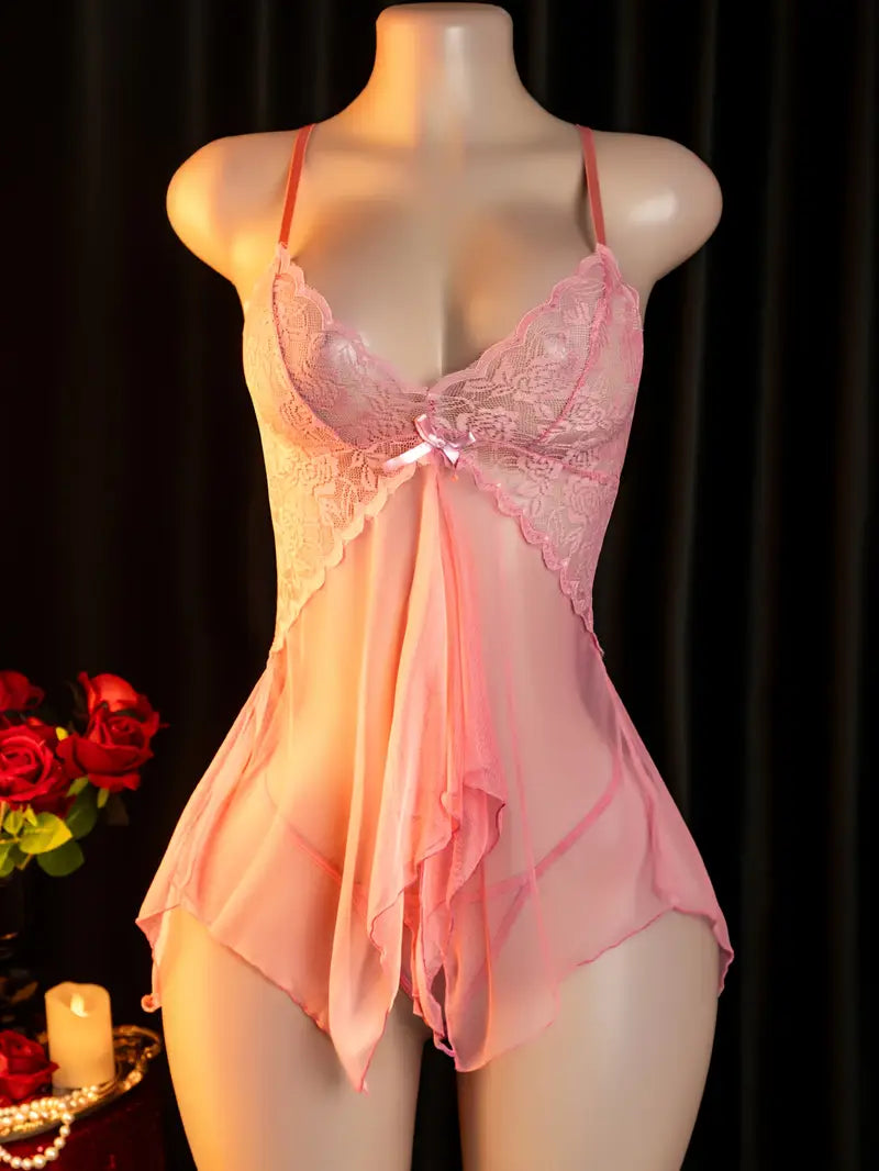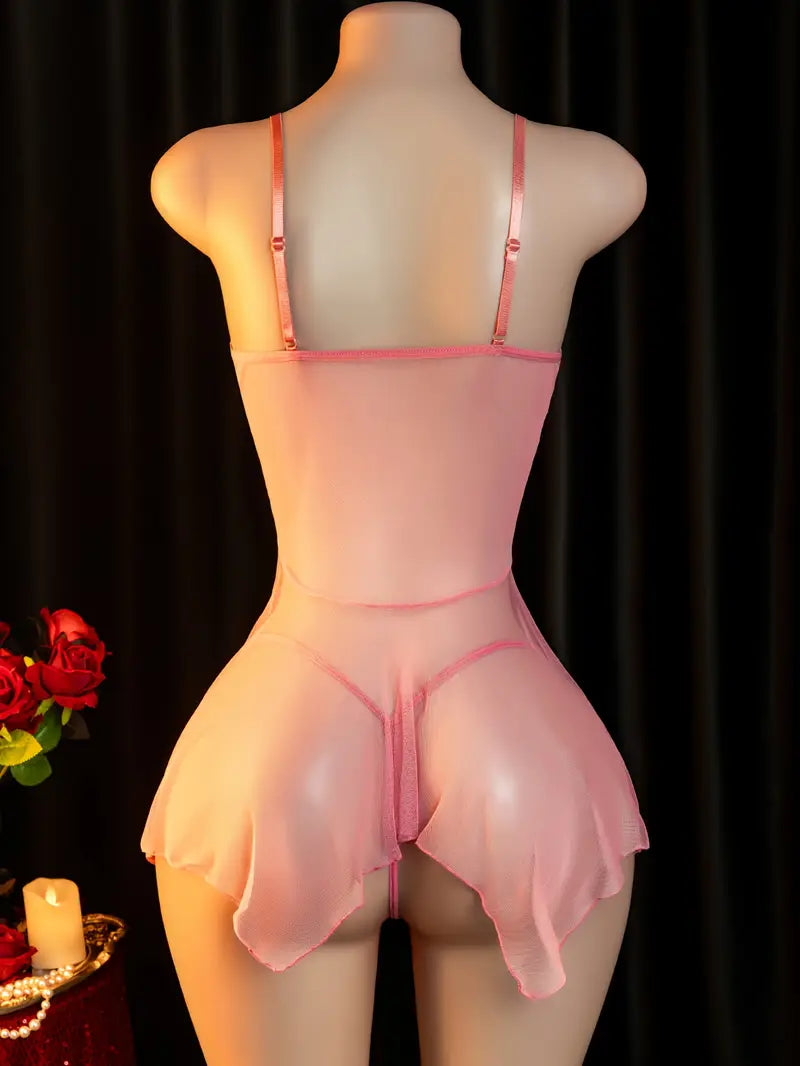 Ladies sexy lingerie rose lace sheer temptation slip dress nightgown passionate set dress lost sexy strapless doll dress daring adult costume revealing exotic enticing lingerie pink