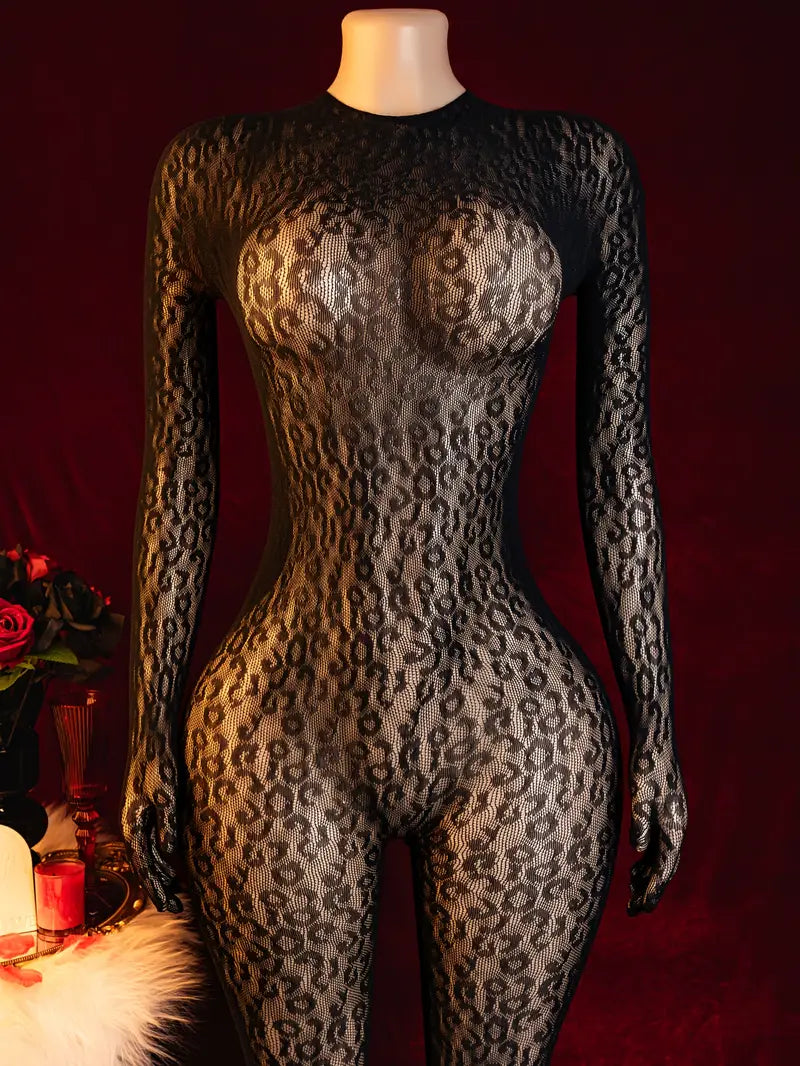 Sexy Lingerie Bodystocking Jumpsuit Leopard Print One-Piece Mesh Dress Women Erotic Costumes Erotica Jumpsuit Body Stockings