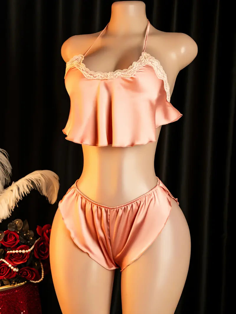 New Sexy Women's Pajamas Pink Sexy Halter Bellyband Pajama Set
