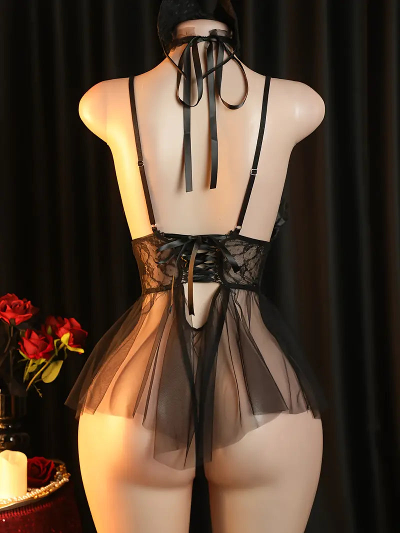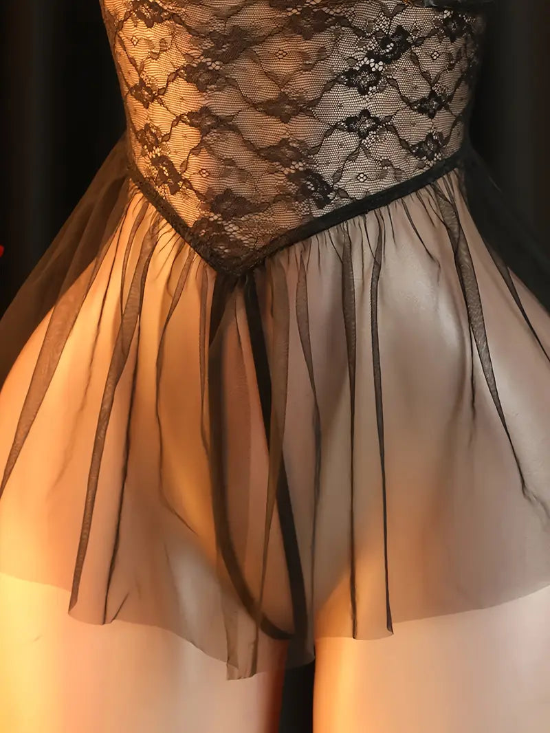 New sexy dress lingerie, black mesh see-through, hot and alluring, date-ready one-piece dress set