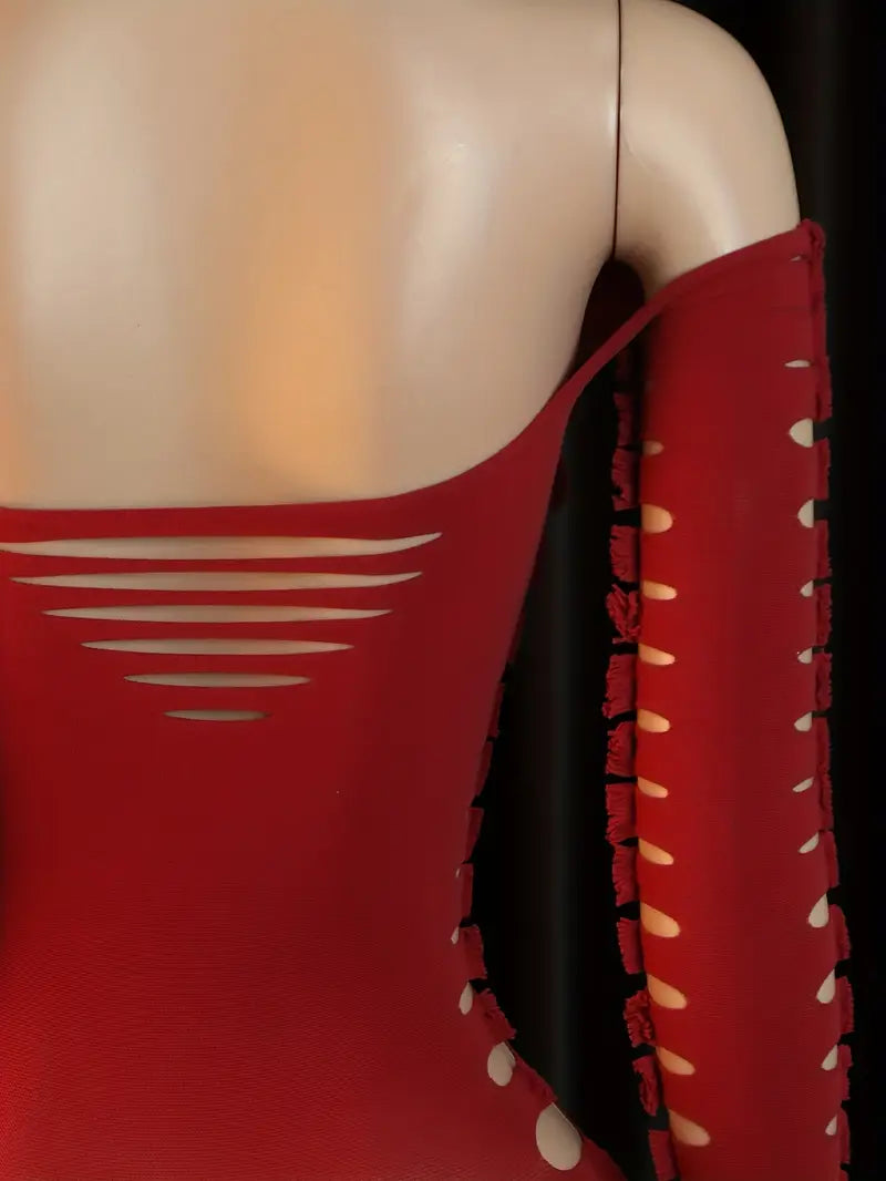 Material: Nylon (Polyamide) Composition: Nylon (Polyamide) 95.00%, Elastane 5.00% Style: Sexy Care Instructions: Hand wash only, do not dry clean Sheerness: Semi-sheer Pattern: Solid color Details: Hollow-out Type: See-through lingerie dress Suitable for: Adults Weaving method: Knitted (including crocheted and pile fabrics)