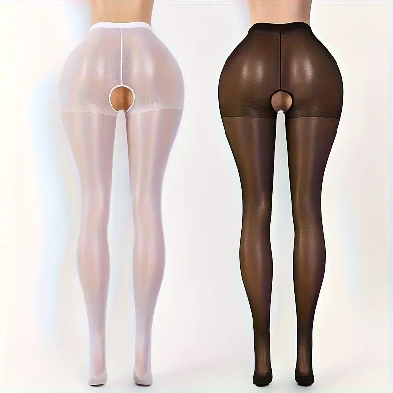 2 Pack Women's See-Through Long Open Pantyhose Cut-out Stockings Bed Sexy Pure Lust Wind Long Middle Over The Knee No Take Dating Suspenders Erotic Lingerie Fishnet Jumpsuits Bold Exotic Seductive Underwear (Includes: White + Black)