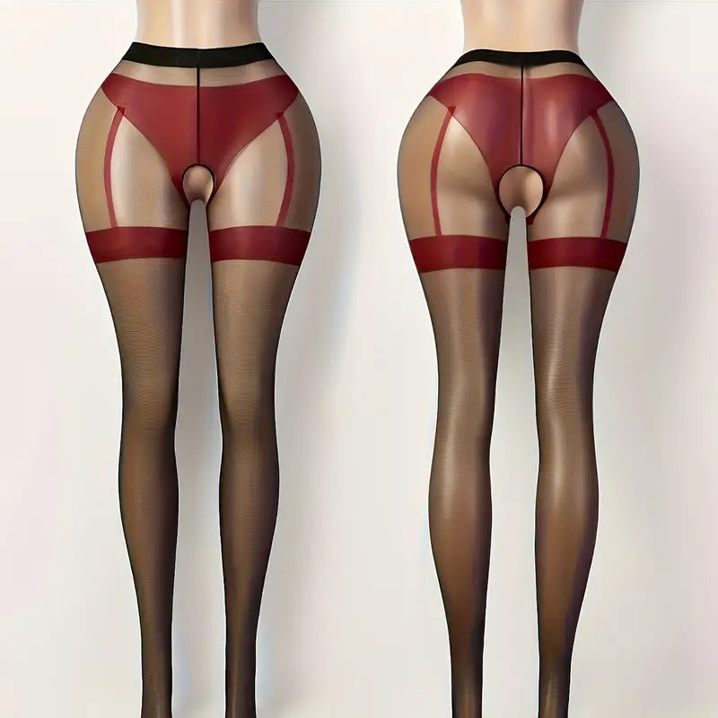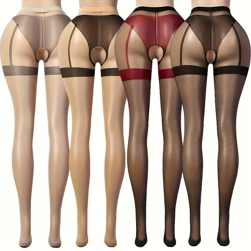 4 Piece Combo Women's Garter Stockings Bed Sexy Color-Blocking Long Over Knee Suspenders Dating Sex Lingerie See-Through Smooth Stockings Bold Seductive Lingerie (Black + Gray + Black Apricot + Black Red)