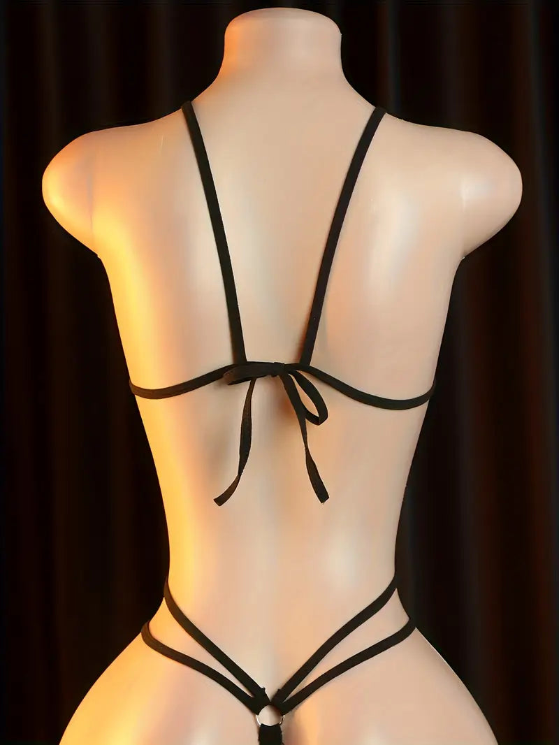 Plus size sex erotic lingerie chest cutout strap jumpsuit halterneck see-through open open seduction tights new pajamas dating battle robe bed passion suit bold erotic outfit seductive lingerie black