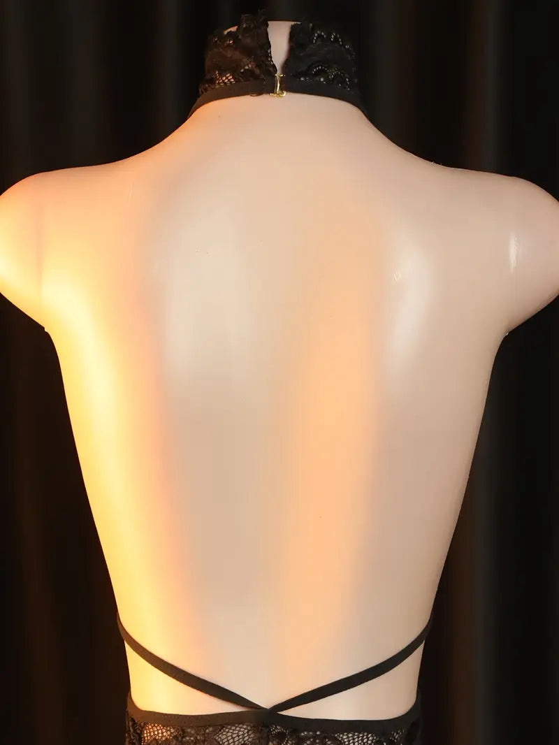 Sexy lingerie hot lace bodysuit black sheer slip dress with open-crotch design, tempting and shameful for bedroom dates, passionate new style battle robe, bold erotic clothing, revealing exotic and alluring underwear.
