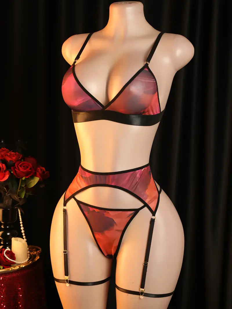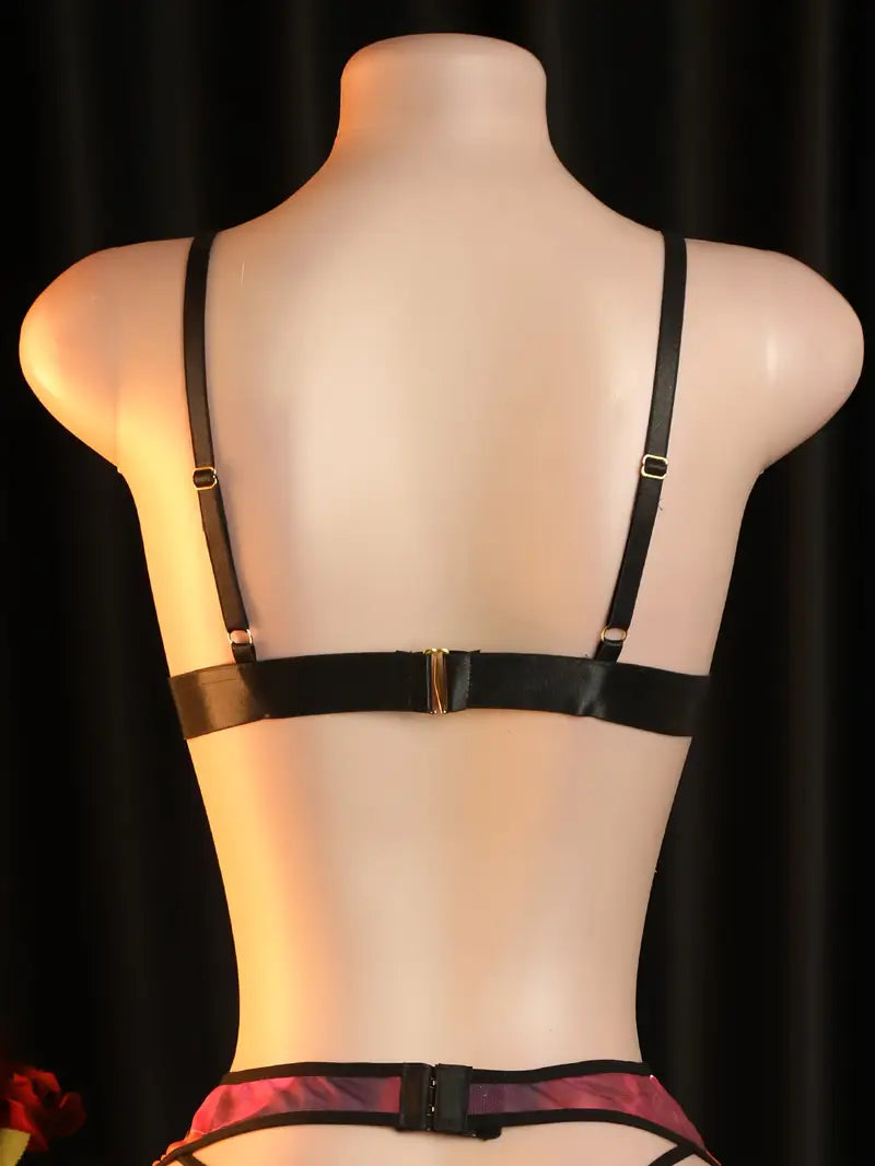 Sexy lingerie set, colorful sexy uniform set, Valentine's Day date outfit including bra, panties, and garter stockings
