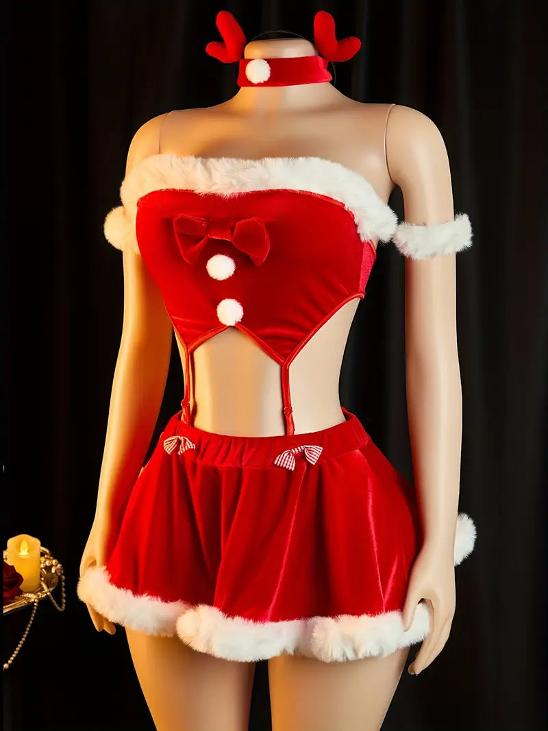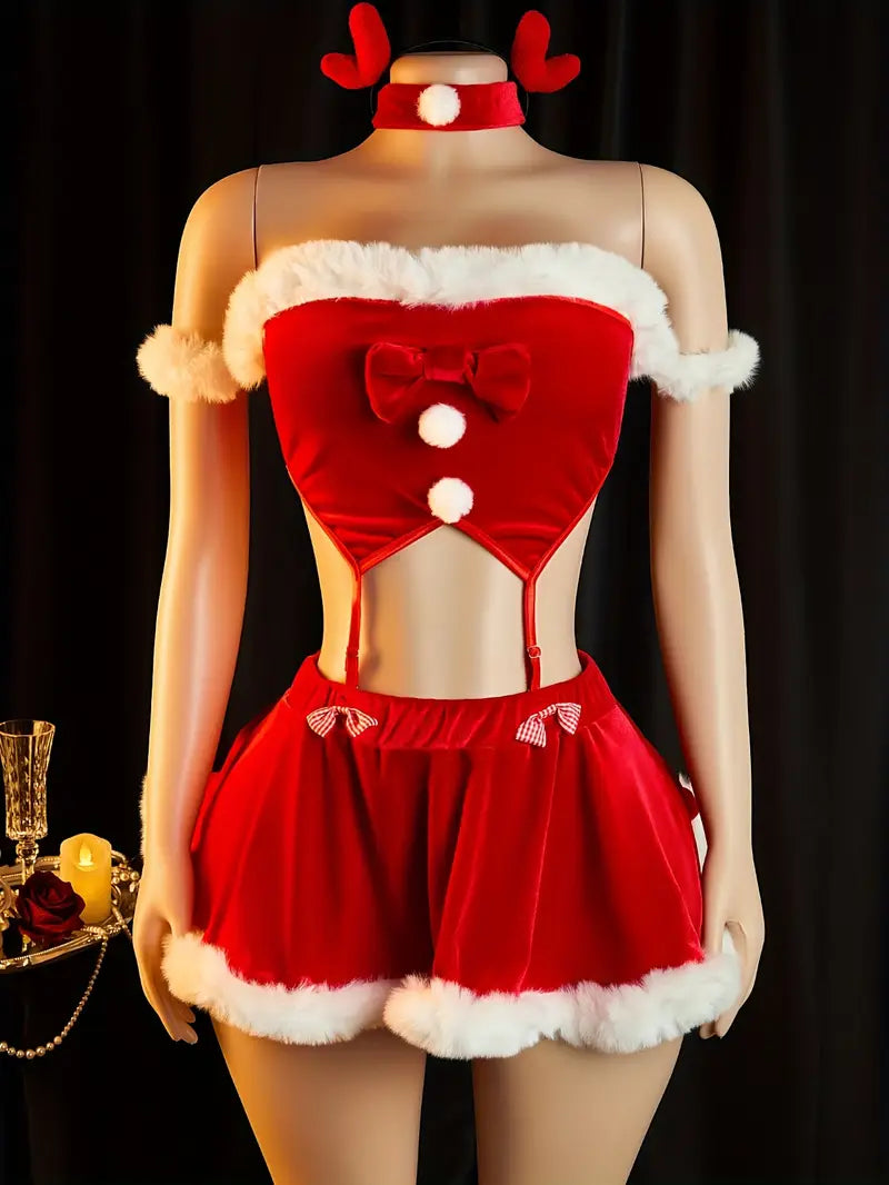 Sexy Lingerie Set Tempting Bow Uniform SetMerry Christmas & Happy HolidaysWomen's Sexy Uniforms & Roleplay