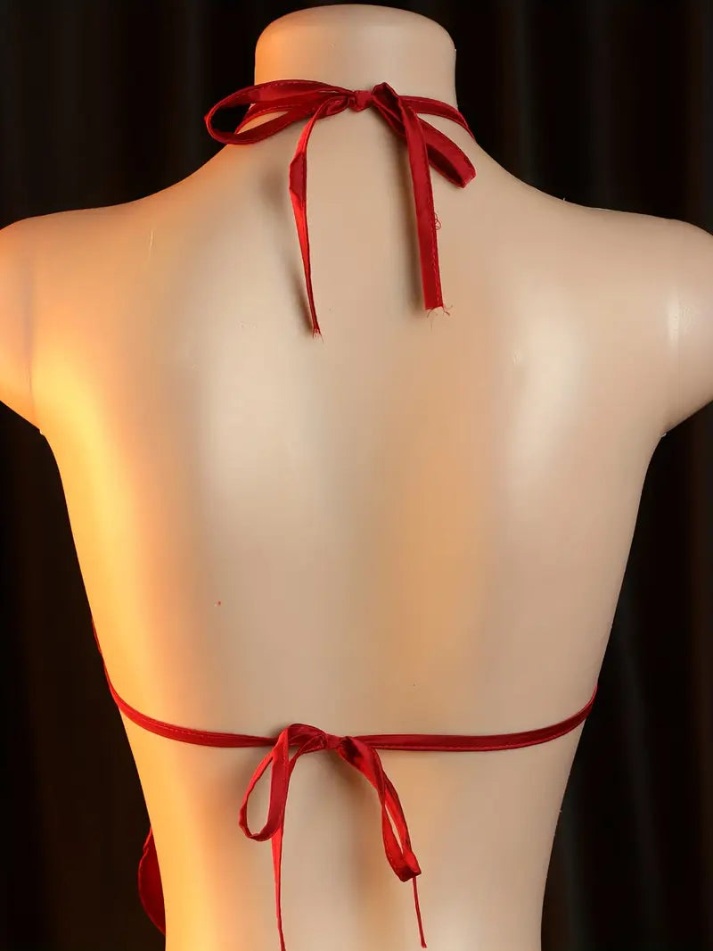 Sexy lingerie set with sheer lace, sexy camisole, tie-back bra, nightwear with easy-off T-panties, Valentine's Day new item with revealing chest, bold erotic outfit, exotic and alluring underwear and panties (includes: bra + panties)