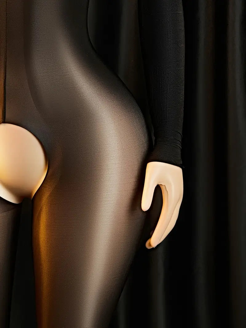 Sexy lingerie sexy hot ultra-thin oily transparent stockings silky smooth temptation plus-size bodysuit back cutout see-through one-piece crotch open tights Valentine's Day new sexy fishnet oil amount underwear and underwear