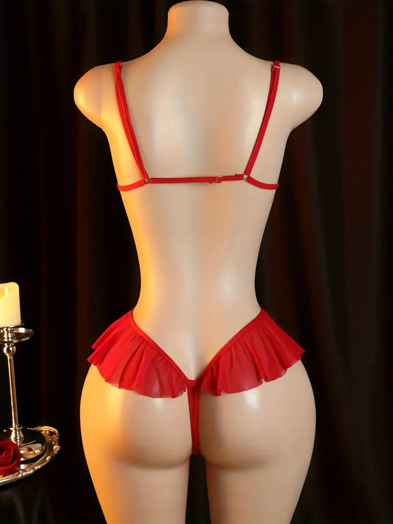 Sexy lingerie with lace straps, tight-fitting one-piece bodysuit, see-through sleepwear with open crotch, new seductive embroidered date outfit, bedroom passionate set, new Valentine's bold erotic costume, revealing exotic and alluring underwear.