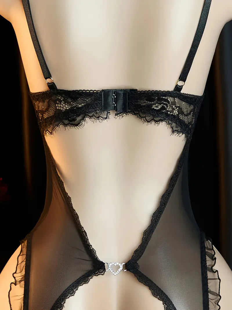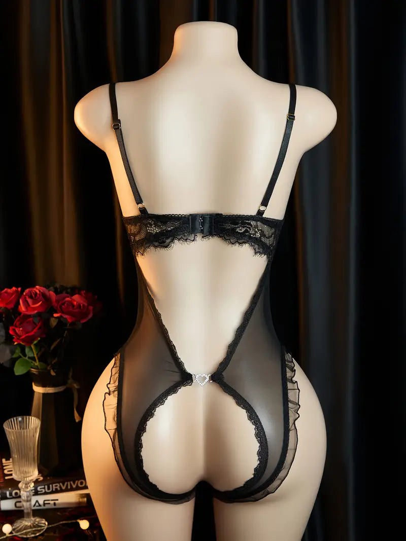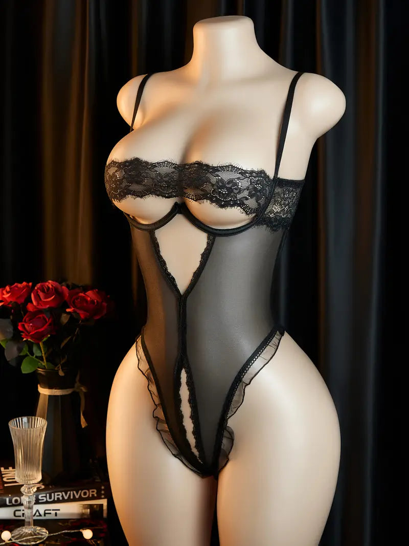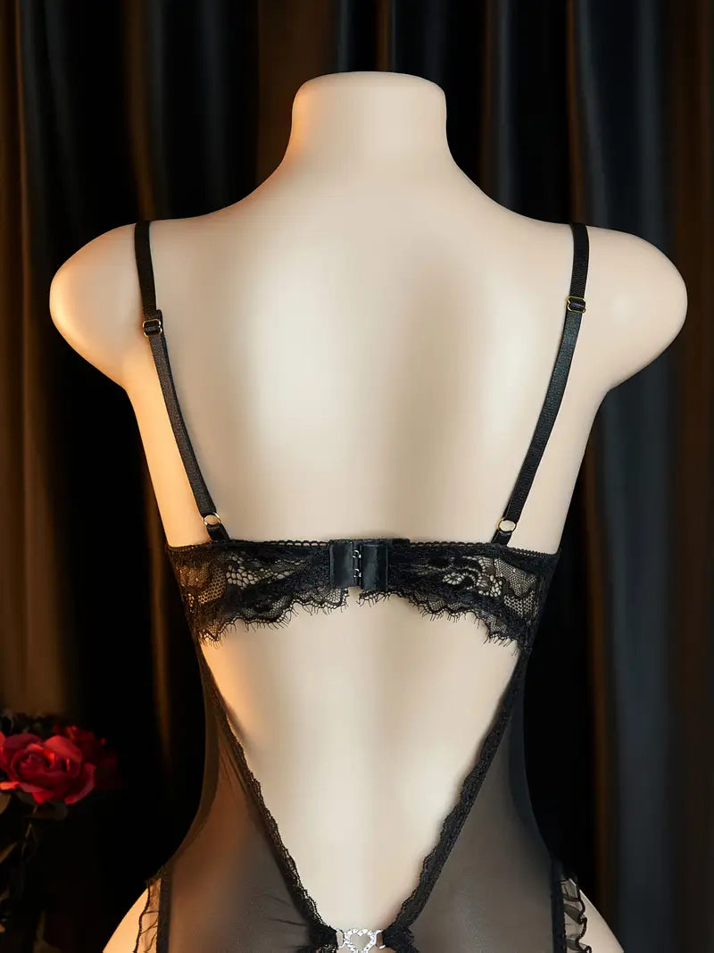 Women's Sexual Interest Jumpsuit, Sexy Slim Breastless Flower Pattern Crotch Jumpsuit, High Support Underwire Chest Design, Hot Back Hollow Design, Women's Erotic Bodysuit